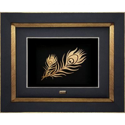 22 × 18 سانتیمتر تابلو پر طاووس طلایی هنری از دل طبیعت، با شکوه و وقار طاووس تابلو پر طاووس