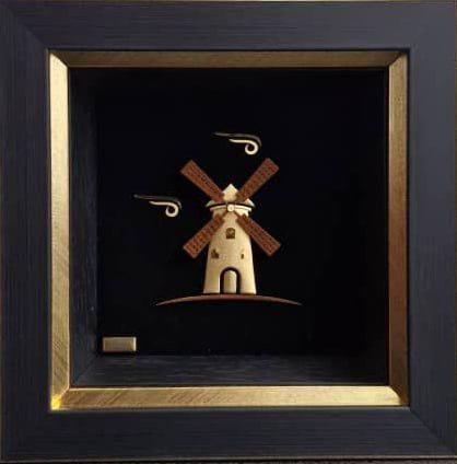 تابلو طلا طرح آسیاب در ابعاد مختلفی تولید میشود تا متناسب با فضای منزل، دفتر یا گالری انتخاب شود.