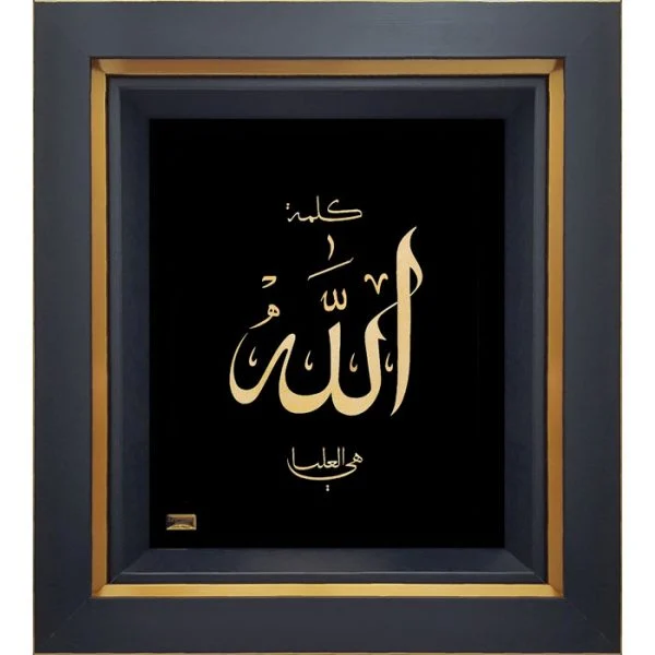 عبارت شریف «الله کلمه الله هی العلیا» جلوهای از عظمت، ایمان و شکوه معنوی را به تصویر میکشد. استفاده از خطی زیبا و ترکیب آن با رنگ طلایی درخشان، این تابلو را به یک اثر ماندگار و ارزشمند تبدیل کرده است.