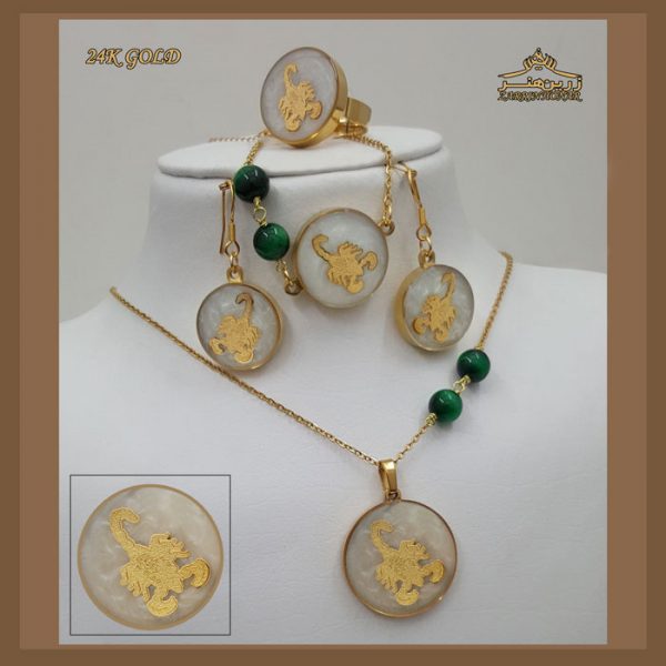 ست ماه تولد آبان | طرح طلایی ۲۴ عیار با رزینکاری درخشان | زرین هنر ایران