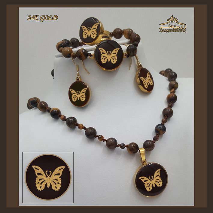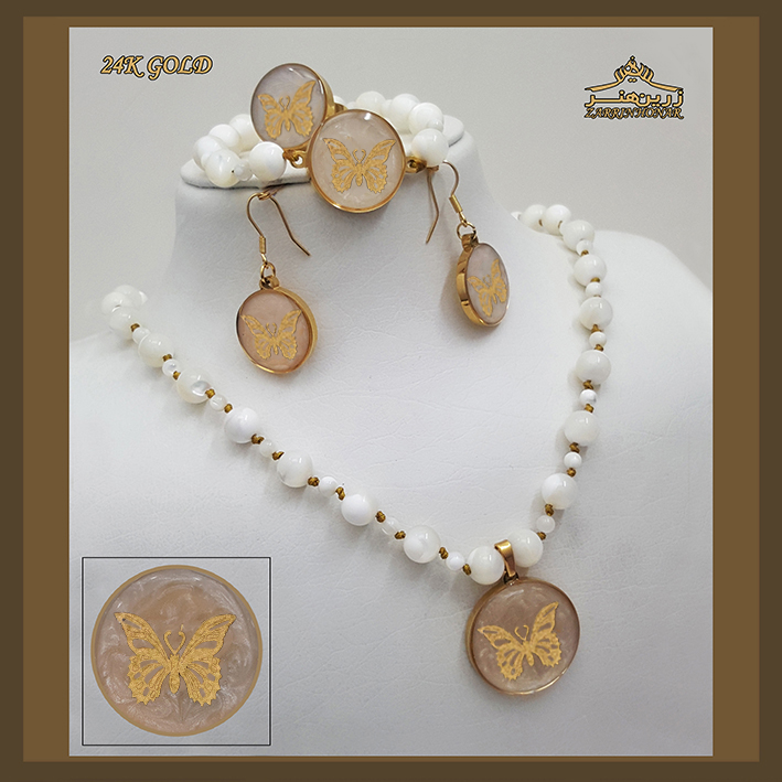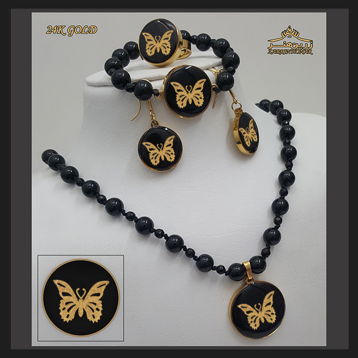 هر قطعه از ست پروانه با دقت بالا و توسط استادکاران ماهر، با استفاده از ورق طلای ۲۴ عیار واقعی ساخته شده است؛ به همین دلیل ظاهری لوکس، درخشان و چشمگیر دارد که با گذر زمان نیز جذابیت خود را حفظ می‌کند.