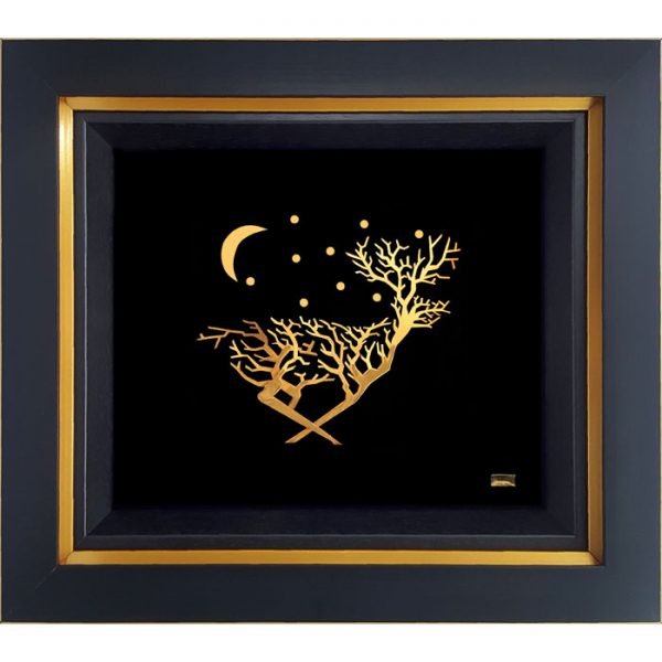 تابلو شب تاز اثری شاعرانه و آرامشبخش است که نمایی از سکوت شب و زیبایی طبیعت را به فضای شما میآورد. این تابلو با ورق طلای ۲۴ عیار و طراحی هنرمندان زرین هنر ایران، جلوهای فاخر و خیرهکننده بر روی دیوار ایجاد میکند.