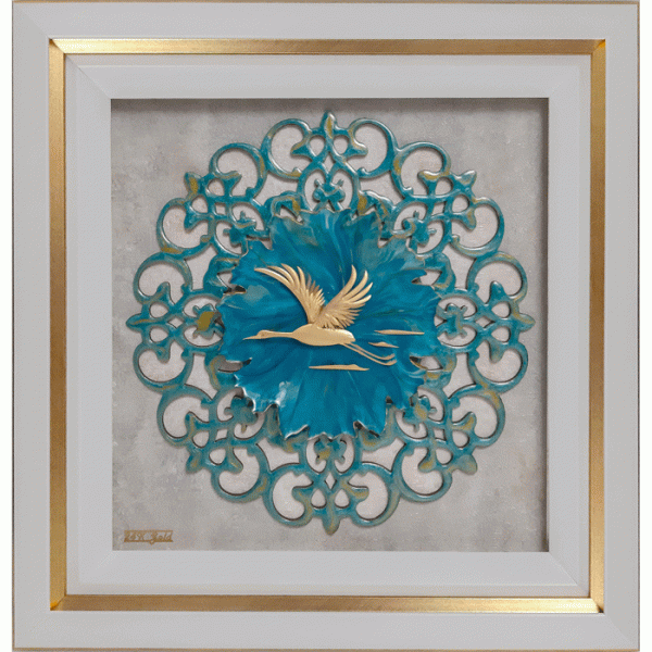 در فرهنگ و هنر ایرانی، لک‌ لک نماد مهاجرت، بازگشت، پاکی و بخت نیک است. حضور این پرنده در پس‌زمینه‌ای از شفق طلایی، حس امید، آرامش و شکوه را به فضا منتقل می‌کند. هنرمندان زرین هنر ایران این صحنه را با نهایت دقت و با استفاده از طلای واقعی ۲۴ عیار بازآفرینی کرده‌اند تا تصویری جاودانه خلق شود.