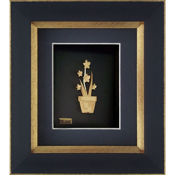 تابلو گلدان (01) از مجموعهی فاخر زرین هنر ایران، تصویری از زیبایی و ظرافت طبیعت را در قالبی لوکس و دستساز ارائه میدهد.