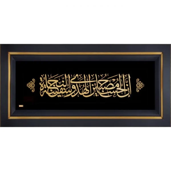 تابلوی ان الحسین مصباح الهدی یکی از فاخرترین و پراحساسترین آثار مذهبی است که با الهام از فرهنگ و هنر اسلامی ایرانی طراحی شده است. عبارت ارزشمند «ان الحسین مصباح الهدی و سفینه النجاه» به معنای «همانا حسین چراغ هدایت و کشتی نجات است» یادآور مقام والای امام حسین (ع) و نقش هدایتگر ایشان در مسیر حق است.
