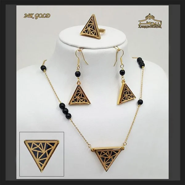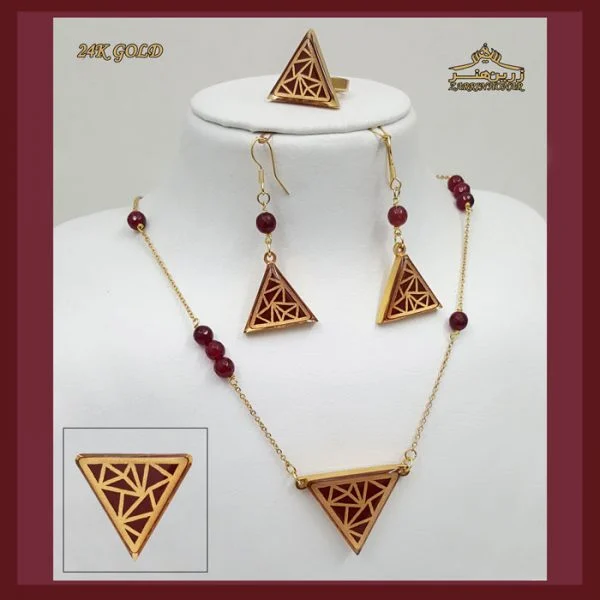 هر قطعه از نیم ست مثلث با دقت بالا و توسط هنرمندان زبده طراحی شده تا گوشهها، زوایا و خطوط هندسی با جلوهای دقیق و براق نمایش داده شود. ترکیب فرم مثلث با روکش طلای براق، هارمونی بینظیری ایجاد کرده است که توجهها را به خود جلب میکند.