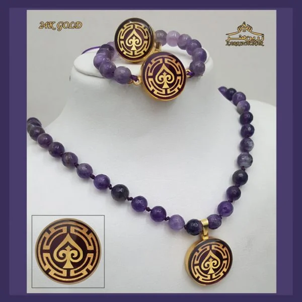 در ساخت این ست از روکش ورق طلای ۲۴ عیار با ضخامت ۳ الی ۵ میکرون استفاده شده است و برای افزایش مقاومت و ماندگاری، سطح آن با لایه رزینی شفاف پوشش داده شده است. این ترکیب باعث میشود محصول درخشش خیرهکنندهای داشته و در برابر عوامل محیطی مقاوم بماند.
